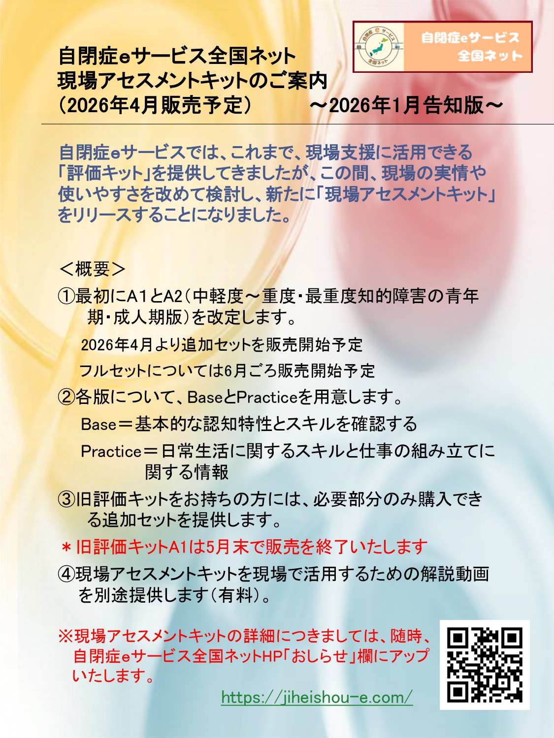 これまで自閉症eサービスでは現場支援に活用できる「評価キット」を提供してきましたが、