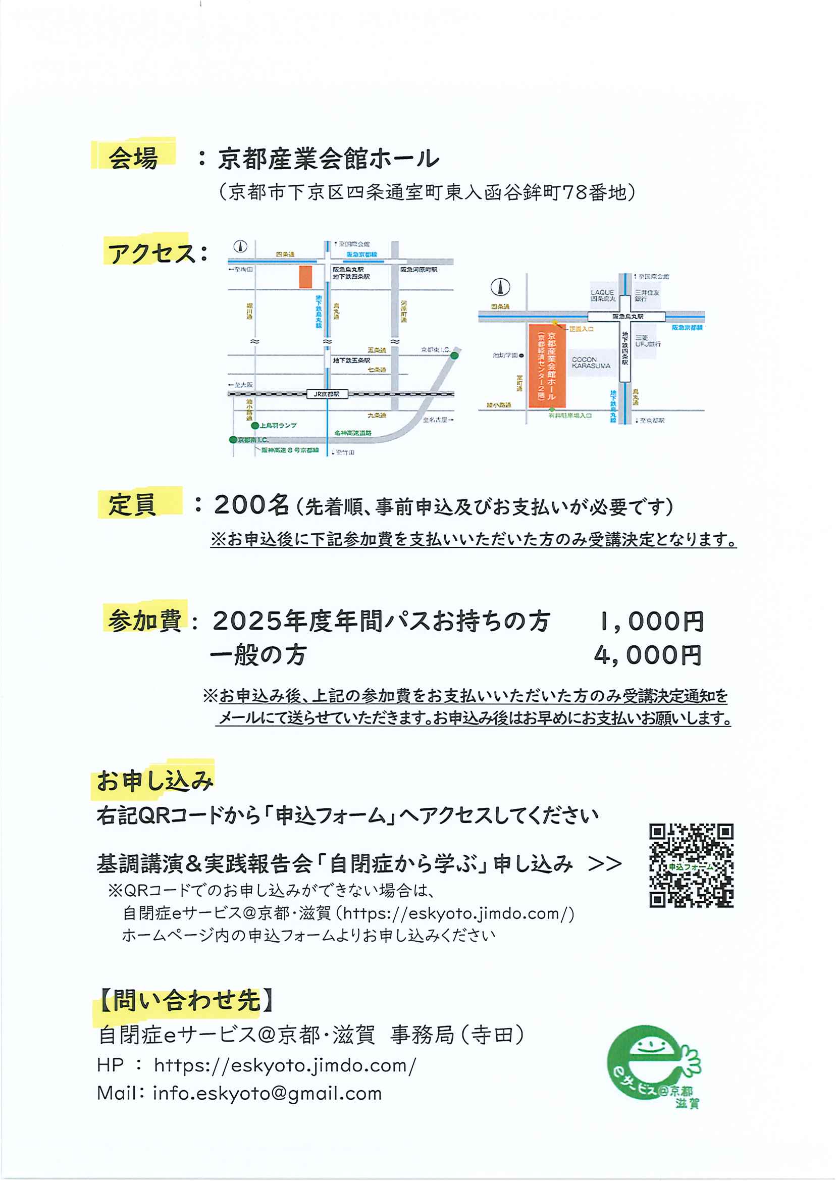 自閉症eサービス@京都滋賀「自閉症から学ぶ~本人から学ぶこと・その家族から学ぶこと、そして共に歩む~」