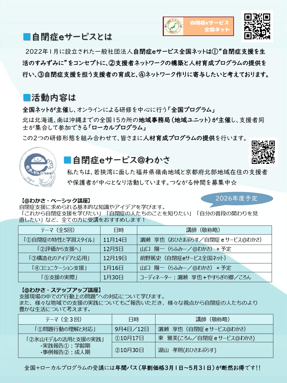自閉症eサービス@わかさ「門眞一郎先生と考える 自閉症の理解と支援」