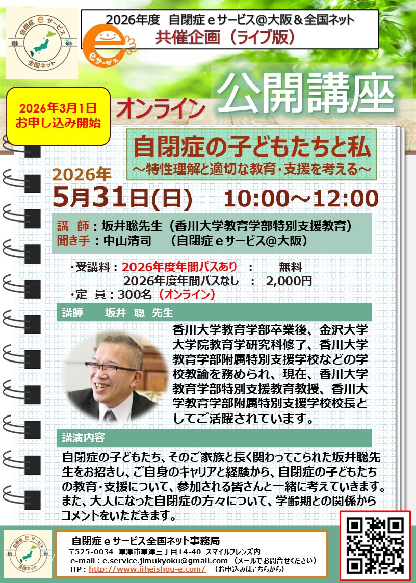 【2026年度年間パス対象】オンライン公開講座「自閉症の子どもたちと私」